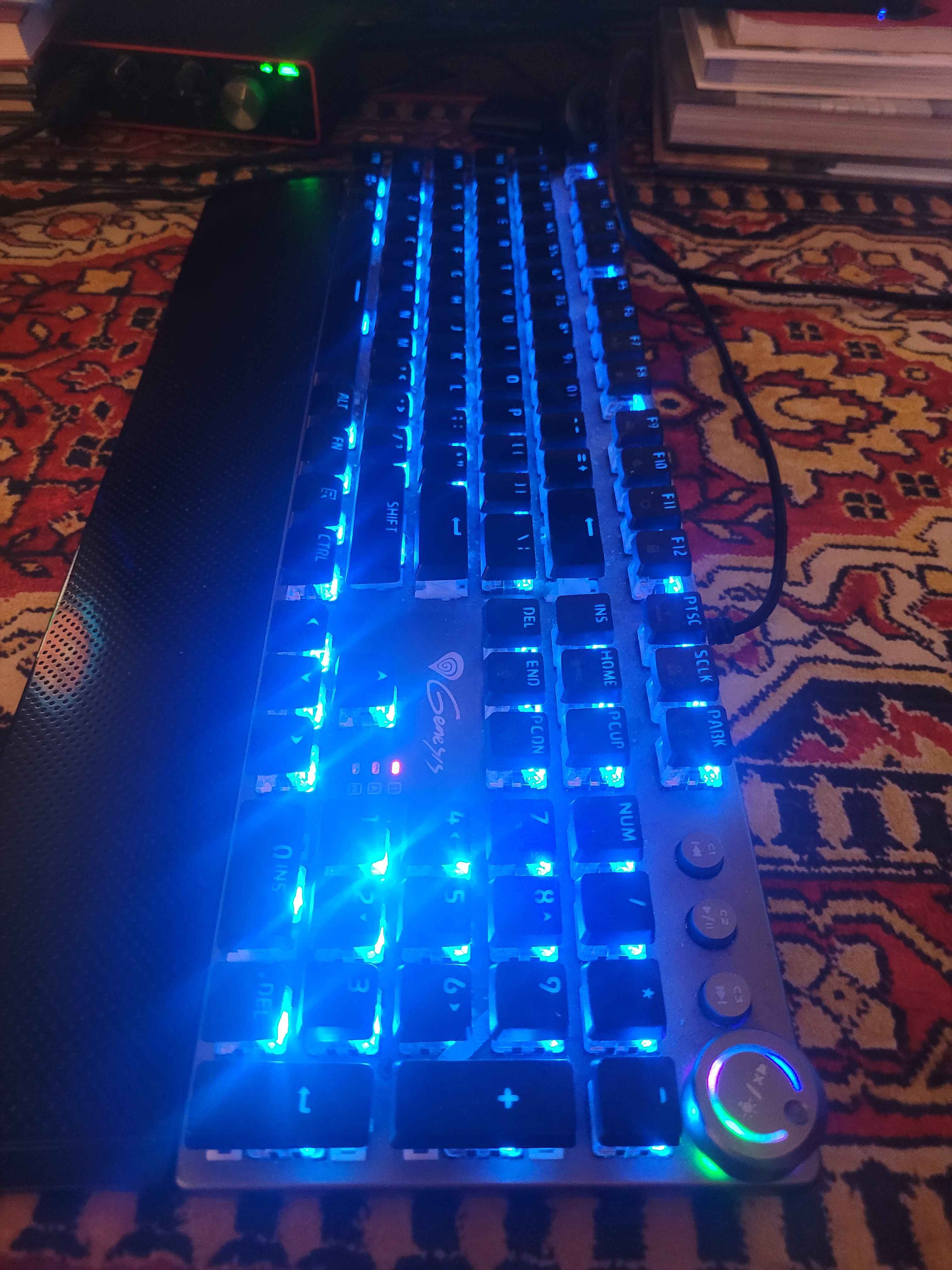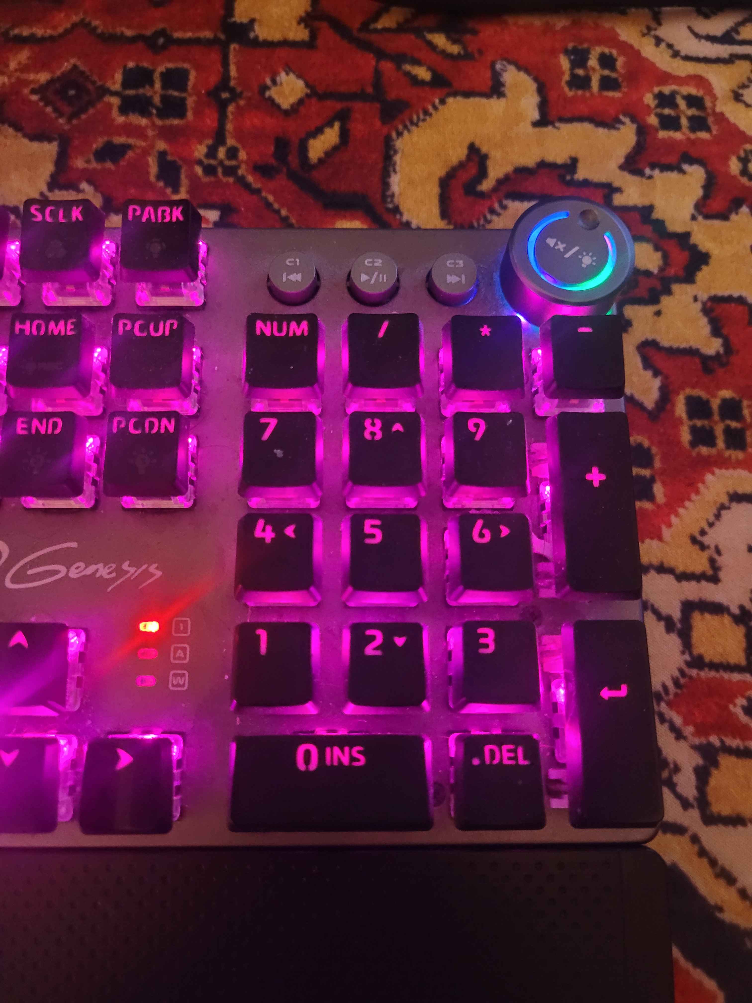 Używana - Genesis Thor 401 RGB to pełnowymiarowa klawiatura mechaniczna dla graczy z podświetleniem RGB. Ma 108 klawiszy, aluminiową górną obudowę i korzysta z przełączników Kailh Brown (tactile). Oferuje anti-ghosting (N-key rollover), szybki czas reakcji ok. 8 ms, oraz pełne podświetlenie RGB z możliwością konfiguracji w software.