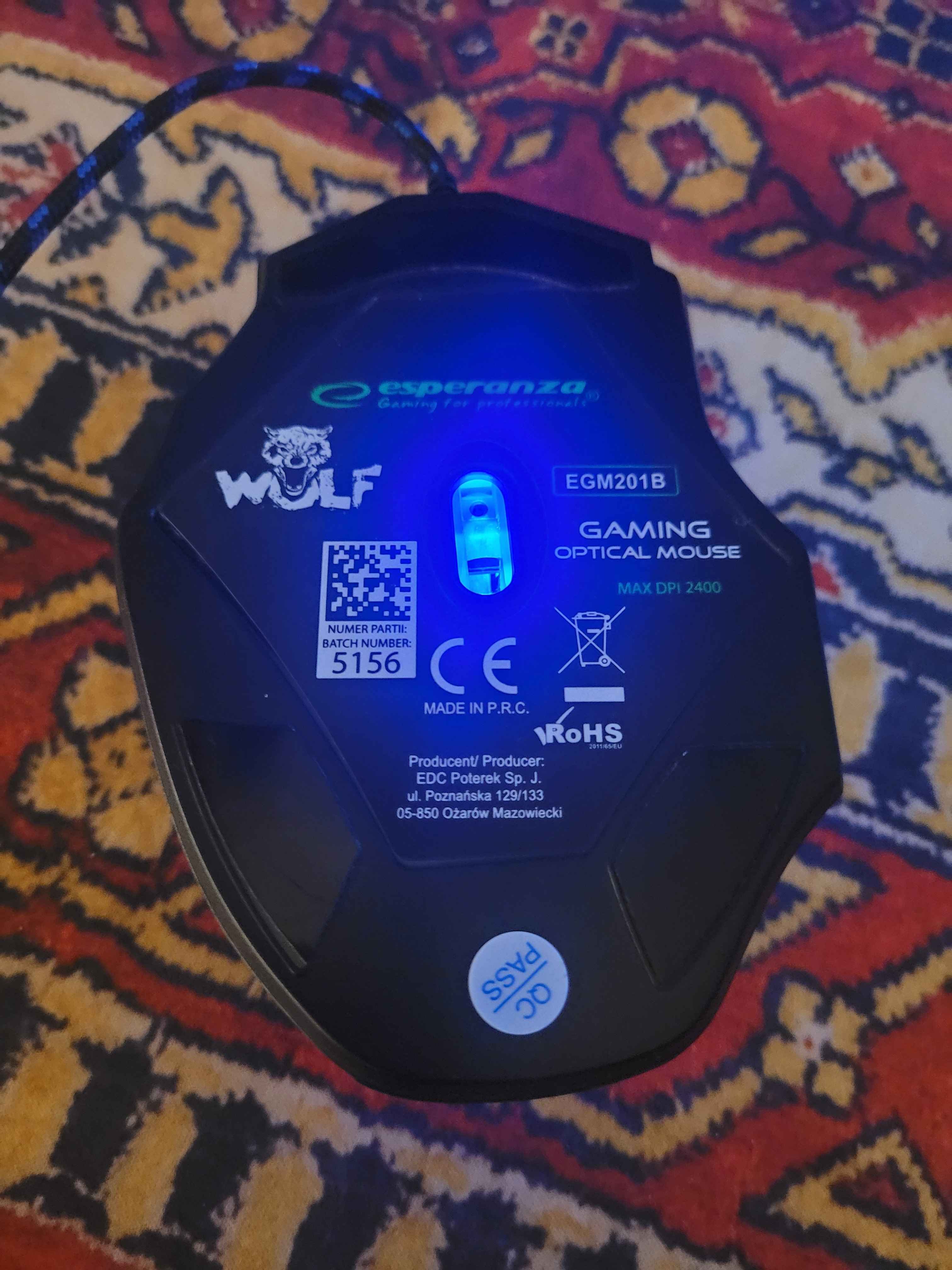 Używana do testów - Przewodowa mysz optyczna USB z sensorem o regulowanej rozdzielczości (do ok. 2400 DPI), 6 przyciskami i rolką scroll. Ergonomiczna konstrukcja dla graczy, podświetlenie LED, kompatybilna z Windows i macOS.