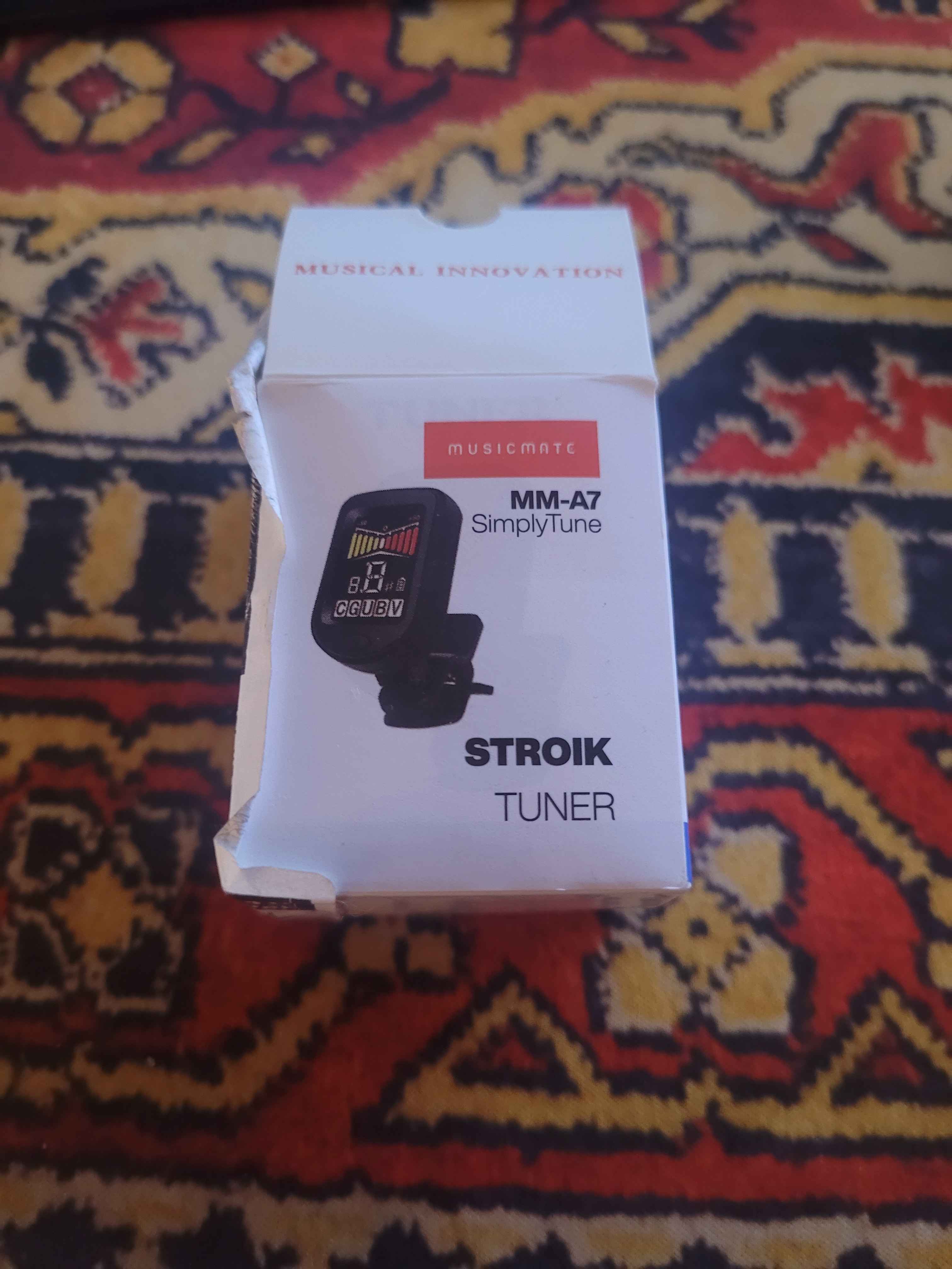 Używany do testów - Kompaktowy stroik elektroniczny z czujnikiem drgań (klips). Umożliwia strojenie w trybie chromatycznym oraz dla gitary, basu, ukulele i skrzypiec. Dokładność ±0,5 centa, częstotliwość referencyjna 440 Hz. Wyposażony w podświetlany wyświetlacz LCD, zasilany baterią CR2032, z funkcją automatycznego wyłączania.